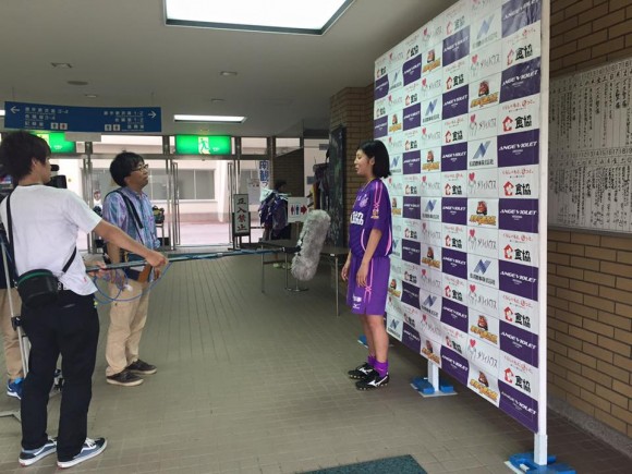 決勝ゴールを決めてインタビューを受ける斎原みず稀
