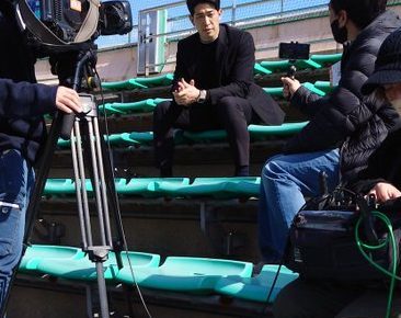 画像は日南・天福球場を訪れた時の安部友裕さん