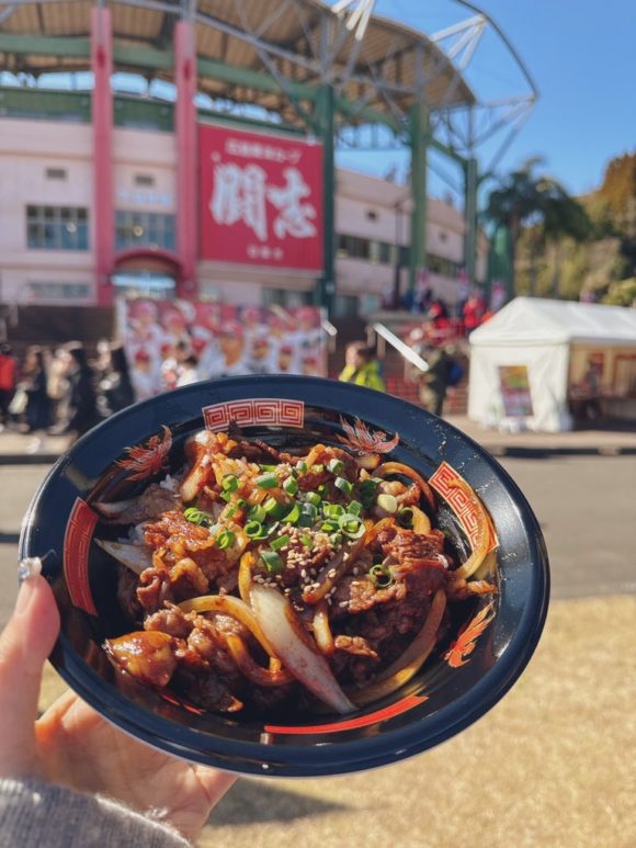 観戦の前にまずは「腹ごしらえ」ということで、天福球場前に出店されているお店の中から「宮崎牛」を堪能できる